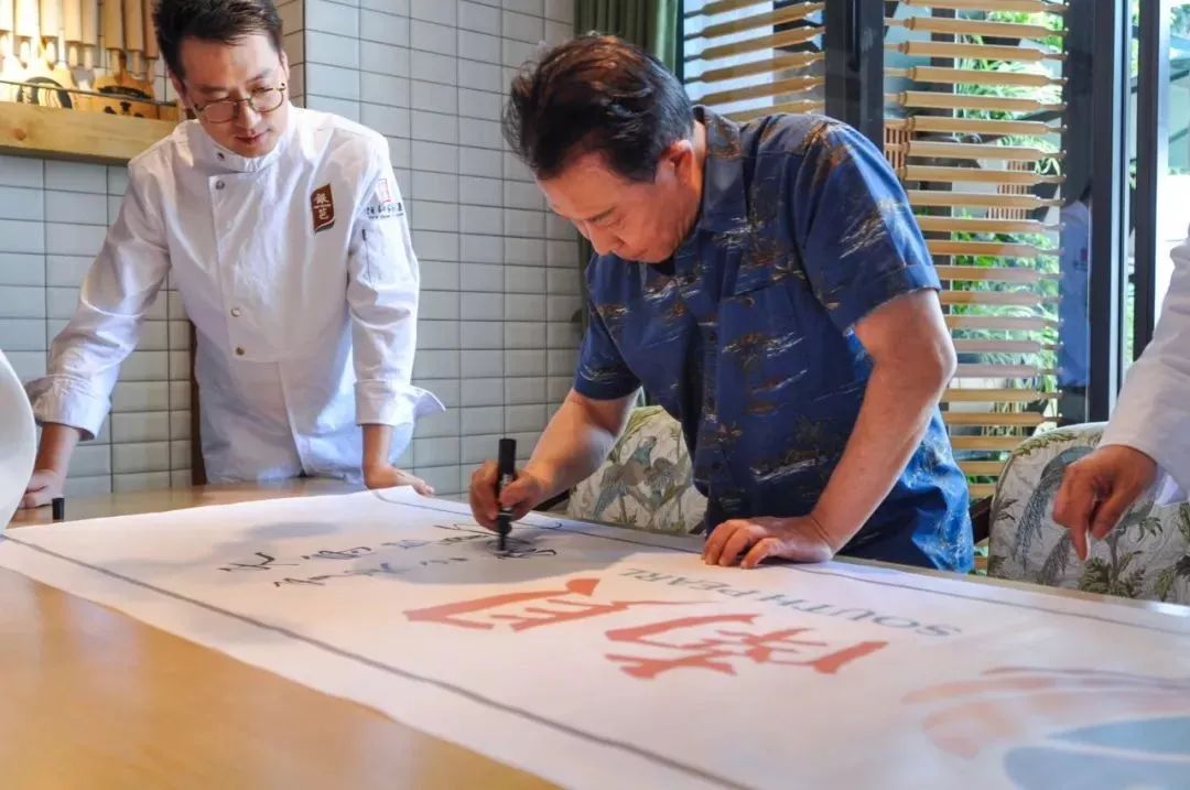 同样热衷于传播中华饮食文化的甄文达大师,在了解创始人的餐饮情怀后,为“南贝”题字。