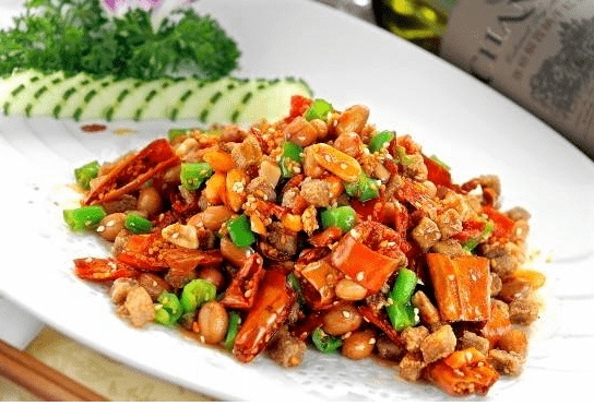 半个时辰,伙计将牛肉、佐酒菜肴陆续端上来。稍后一大盆兔肉上来便立即吸引了大家,只见油色红亮,肉块指头大小,金黄略白的肉丁多数带骨浸泡在红亮的汤汁中,肉和汤上有一些芝麻,红艳的辣椒平添几分温度。盆中点缀的几片翠绿香菜。香气透过腾起的热雾沁入心扉,让人垂涎欲滴,饥肠辘辘。崔玉贵挑一块肉丁放入口中,顿觉微辣还略烫又不失鲜麻,口舌生香,那不带骨头的肉绵而不柴,带骨的肉细滑而脱骨,那肉质也十分鲜嫩爽口。众人吃得甚是欢畅,崔玉贵满足地翘着兰花指品着茶,感觉嘴皮因麻辣而还在轻微跳动。凭窗眺望江面夜色,渔火盏盏,码头千帆齐聚,灯火辉煌。吹着沿山而上的江风,顿觉惬意,一路的劳顿一扫而空。