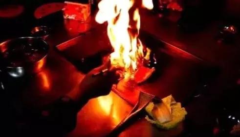 当炭火在铁板下燃烧,铁板上的肉会随着油温“滋滋”作响,坐在一旁帮忙烤烧烤的店员总是能掌握到合适的火候,而一旁坐等吃肉的顾客,不时拿出手机拍照,记录下食物在火中“起舞”的画面。