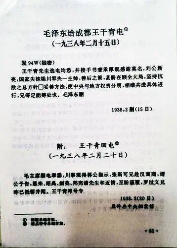 1937年9月1日,刘湘率部出川抗战。次年1月,病逝于汉口。毛泽东专门致电王干青表达哀悼,并嘱托其继续推动四川军政界坚持抗战。尽管此后王干青不再担任驻延安代表,转任集团军驻成都联合办事处顾问,但他始终致力于团结川军上层力量。