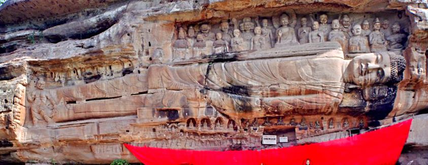刘仪凤诗《临赋旧制》题咏镌刻于安岳卧佛下方摩岩壁。安岳卧佛长21.3米,刻于盛唐,为古代全身最长石刻卧佛。