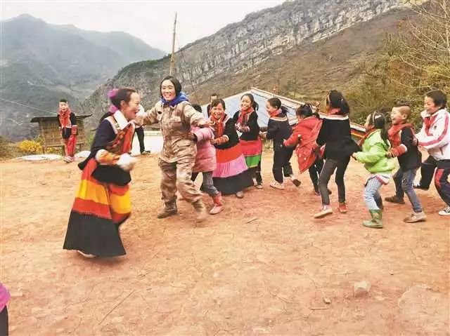 谢彬蓉老师和孩子们做游戏(图片来源:重庆日报)