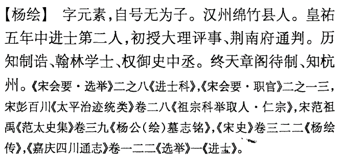 杨绘(1027-1088),字元素,绵竹人。他自幼聪颖,饱读诗书,才华横溢。宋皇祐五年(1053)参加御试,擢进士第二名(经《天章阁待制杨公墓志铭》《宋登科记》等资料考证),年仅26岁便高中榜眼,在同科进士中堪称年轻有为的佼佼者。其诗词文章在当世颇具影响力,文风清新洒脱且蕴含深邃思想——在政论文章中,他对时政局势、社会治理提出独到见解,尽显卓越政治洞察力。