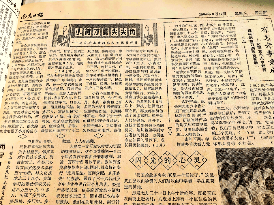 1984年8月17日《南充日报》对肖开勇事迹的通讯报道(贾代成 摄)