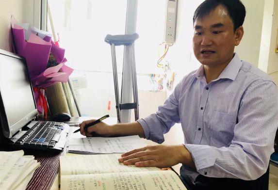 王龙奎今年44岁,是江安县江安镇加埝村加1组村民,残疾一级。20多年前,外出务工的王龙奎从工地11米高处坠落,全身10多处粉碎性骨折,高位截瘫。多年来,他经历了14次大型手术,他的母亲2015年检查出小肠肿瘤;2017年,父亲又被确诊为直肠癌。生活的困苦却没有让他放弃对生活的渴望,他坚信知识改变命运,希望造就自己的事业,为此他努力读书学习,还考取初级会计师证。