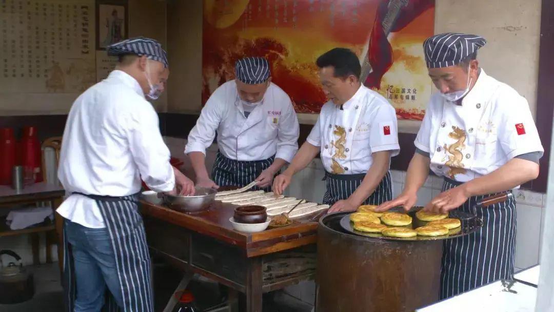 胡饼可在行军途中以头盔为锅烤制,故得名“锅盔”。锅盔的做法流传到民间后,渐渐因谐音被称为“锅魁”。