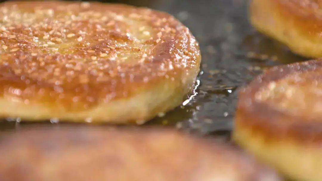 “一打、二抹、三烤”,制作军屯锅魁工序看似简单,其实手艺全在火候上。