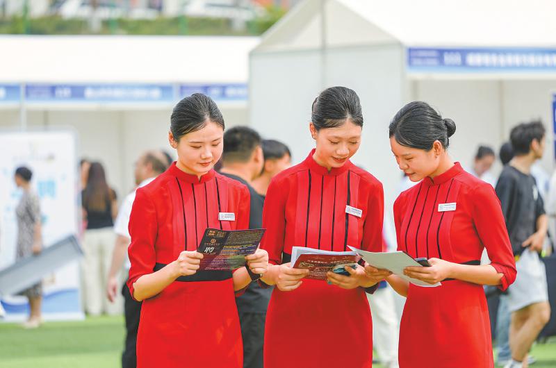 5月21日,位于眉山的天府新区通用航空职业学院内,大学生在高校毕业生双选会上寻找心仪的岗位。当天,由四川省职业介绍服务中心、天府新区眉山党工委党群工作部、天府新区眉山社会事务局等单位主办的“职引未来 筑梦启航”活动在该学院举行。来自四川、重庆等多个省份的200余家企业提供了4000余个岗位。 翁光建 摄(C视觉)