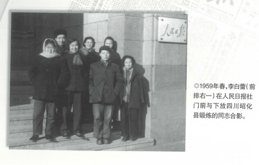 1958年,李白蕾响应党的召唤,干部下乡三同(同吃同住同劳动),建设新农村。李白蕾下到四川省昭化县的穷乡僻壤,深入调研,与广大农民一起修水利、改良田,及时制止了滥砍林木的破坏行为。她们的“三同行动”引起高层领导的关注。
