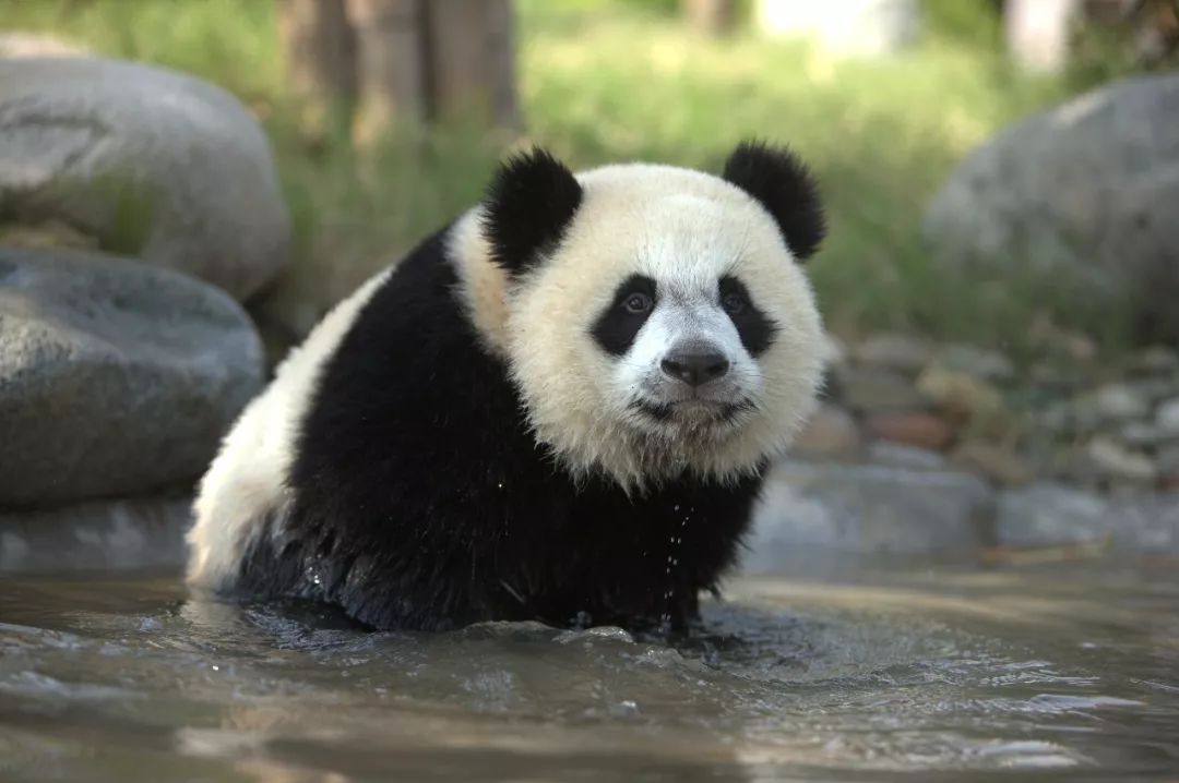 戏水的大熊猫(张志和 摄,图片来源:四川省地方志办)