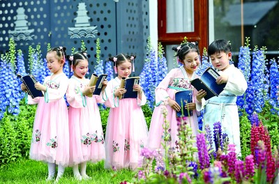4月20日,江苏淮安的小朋友诵读古诗。光明图片/视觉中国