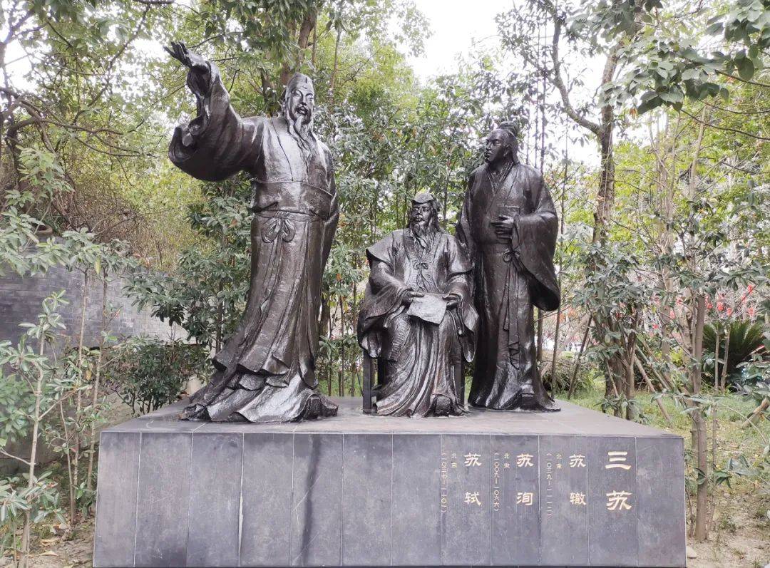 一门三父子位列唐宋八大家,绝无仅有。此地元代改宅为祠,明末毁于兵火,清康熙四年(1665年)在原址上摹拟重建,是蜀中最负盛名的名人祠堂和古典园林。