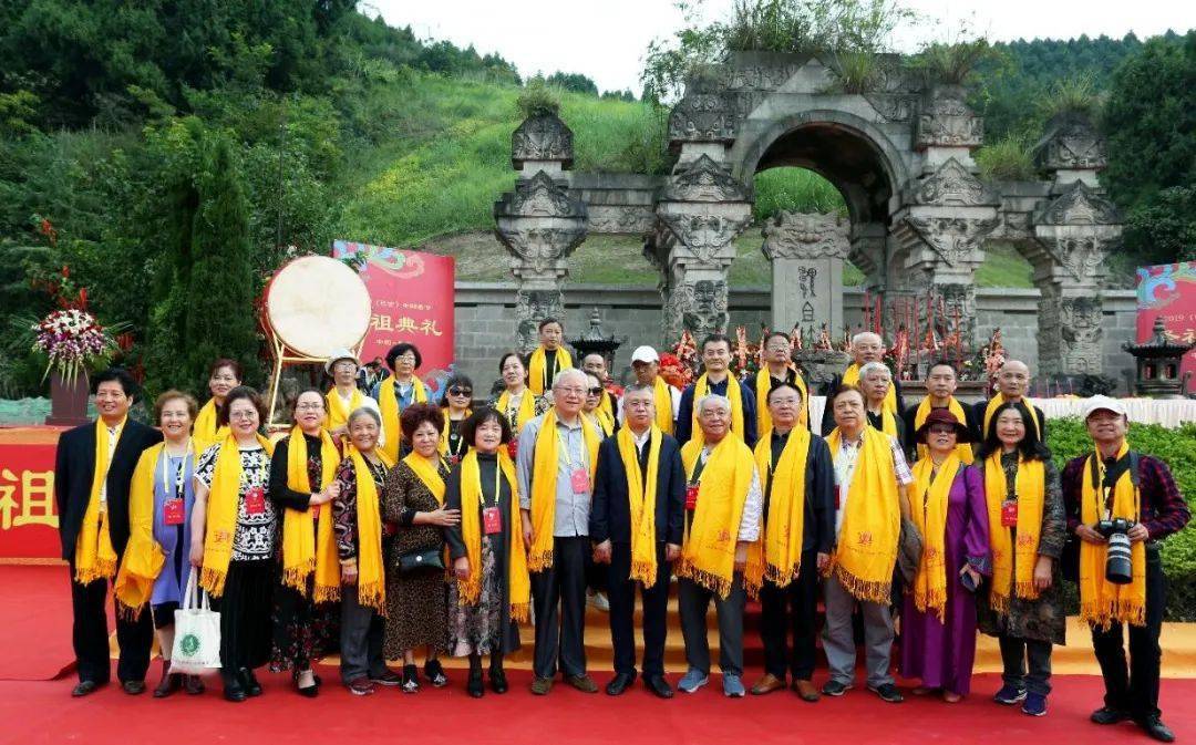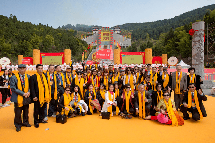 2019年4月3-6日,第四届海峡两岸嫘祖文化交流活动在盐亭县举行,图为参加祭祖大典的部分台胞代表合影留念(图片来源:四川省人民政府网)