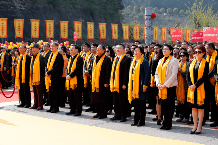 2019年4月3-6日,第四届海峡两岸嫘祖文化交流活动在盐亭县举行,图为参加开幕式和祭祀大典的两岸嘉宾(图片来源:四川省人民政府网)