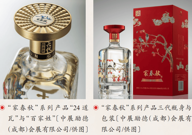 在儒家文化商业理念的提炼过程中,中展励德(成都)会展有限公司出品的“家春秋”系列产品,巧妙地融入设计美学,以中国最具情感共鸣的IP——“家”为核心。该产品在外观与内涵上均表现出卓越品质,其设计不仅追求视觉美感,更蕴含深厚的文化意蕴。产品采用四方四正的围合式建筑结构,融合了天圆地方的哲学理念,形成了圆盖方瓶的独特造型。瓶底的屋檐设计象征着国人对“家”的深刻记忆。门内代表家庭,门外象征世界,其开放式的外包装设计宛如一扇敞开的家门,构建起家庭与外界的情感纽带。瓶盖上所采用的“24道瓦”设计,即瓶盖上纵向排列的24片瓦状结构,用“24”这个数字,对应中国传统文化中的24个节气。儒家认为,天地时序的循环(如春秋更迭、四季轮转)与家族血脉的传承具有同构性——24节气作为自然时序的精准划分,是“天之道”的具象化;这一设计也呼应了《中庸》记载的“春秋修其祖庙,陈其宗器”祭祀传统。此传统并非单纯的“敬祖”仪式,而是儒家“顺时而祭”理念的重要体现。中间的五层结构则代表了阴阳五行,与中国传统文化紧密相连。瓶身是“家”,瓶体是“家”字构造,宝盖头比作屋檐,护一方心安,体现《孝经》“居家理,故治可移于官”的齐家理念,强调了家庭管理与国家治理之间的内在联系。瓶高24厘米,底部宽度为8厘米,其设计与24道瓦相呼应,象征着四面八方的祝福汇聚于一处。瓶身图案,采用中国文化中“喜鹊”图案,寓意吉祥如意、喜气洋洋。三代瓶身上画有3只喜鹊,六代画六只,九代却只画八只,其中一只化为仙鹤,这一构思来源于宋徽宗的《瑞鹤图》。通过数量变化隐喻家族繁衍,暗合《诗经·周南·螽斯》“宜尔子孙,振振兮”的祝福。喜鹊站在“柿树”上,“柿子”寓意好事连连、硕果累累。在色彩运用上,中国红(三代)寓意鸿运当头,旭日金(六代)寓意金碧辉煌,紫授金(九代)寓意加官晋爵、平步青云。“家春秋”通过器物共享性强调家族共同体,该系列文化创意产品的设计,旨在强化宗族认同感。品牌差异对应家族发展阶段的“进阶”叙事,体现《仪礼·郊特牲》“以官爵人,德之杀也”的差序伦理。周边产品中,酒具的设计体现了“一片瓦,一家人”的理念,九毫升的杯体容量,方中带圆的设计,提供了极佳的手感,使消费者在品味酒的同时,也能感受到“家春秋”的美学生活。酒具托盘的瓦片造型与杯座屋檐的设计遥相呼应,背面的喜鹊图案设计只有在消费者将酒具带回家中使用时才能被发现,这一细节与品牌使命“缔造家的深度喜悦”不谋而合。正反字定制服务,通过姓氏的寻根溯源,延续了宗族的生命力。采用现代设计语言诠释的百家姓正反字,解读了华夏民族的文化密码,目前该款酒已包含147个姓氏设计,覆盖了中国95%的人口。以姓氏为纽带,连接每个家庭对“家”的归属感和荣誉感。