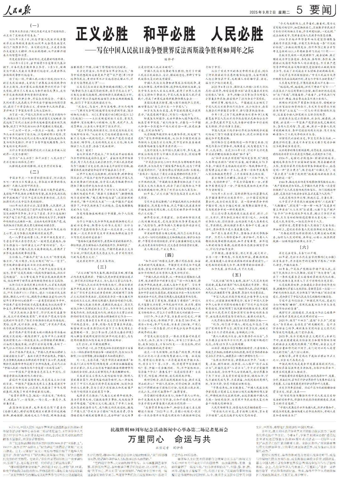 【纪念抗战胜利80周年】正义必胜 和平必胜 人民必胜——写在中国人民抗日战争暨世界反法西斯战争胜利80周年之际