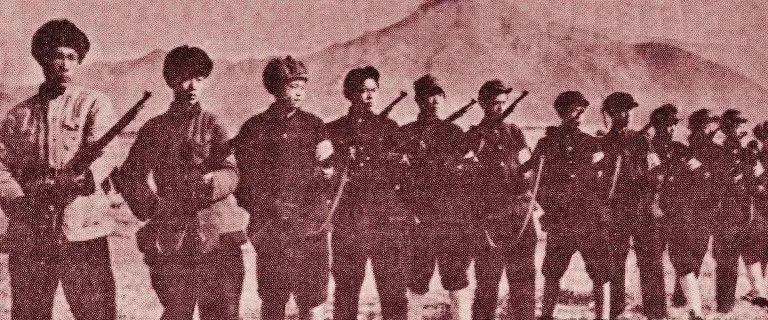 中华人民共和国成立初期,辽东省凤城县秋木庄村的民兵在练习射击。
