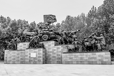 天津平津战役纪念馆外胜利广场上的一组名为《人民支前》的大型锻铜群雕。光明图片/视觉中国