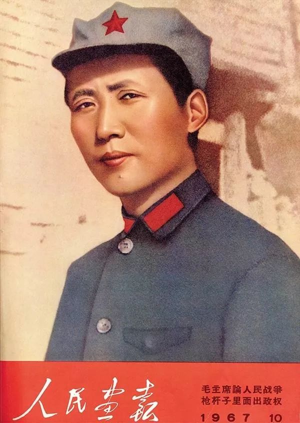 1967年第10期《人民画报》封面,使用1936年斯诺拍摄的毛泽东戴军帽的照片