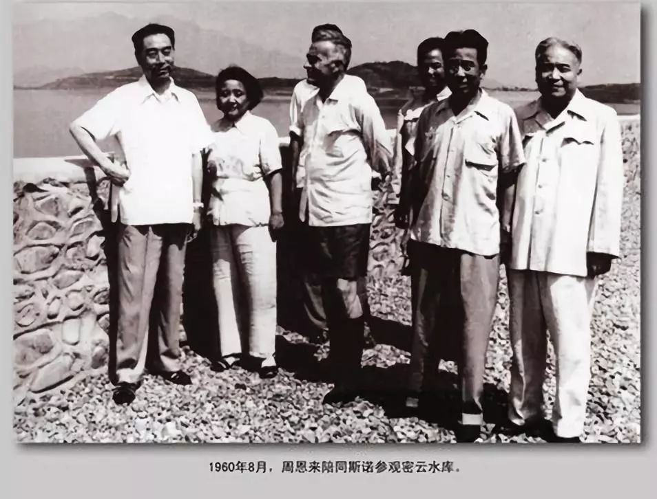 1960年8月,周恩来陪同斯诺参观密云水库(图片来源:中国共产党新闻网)