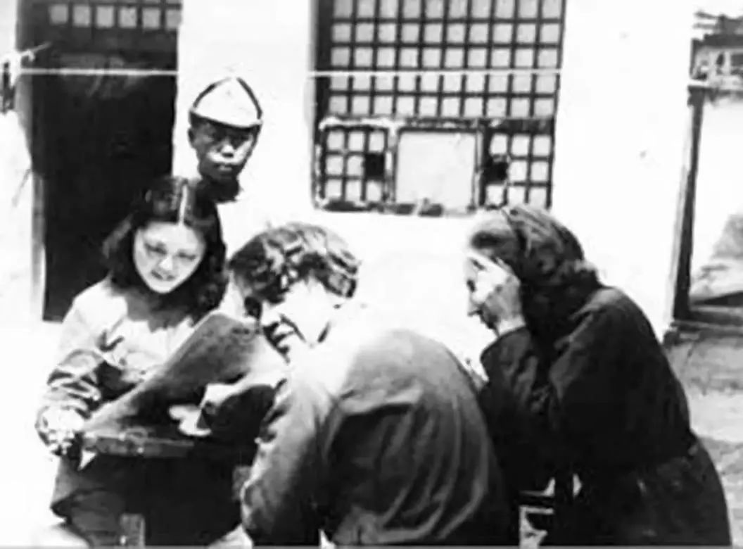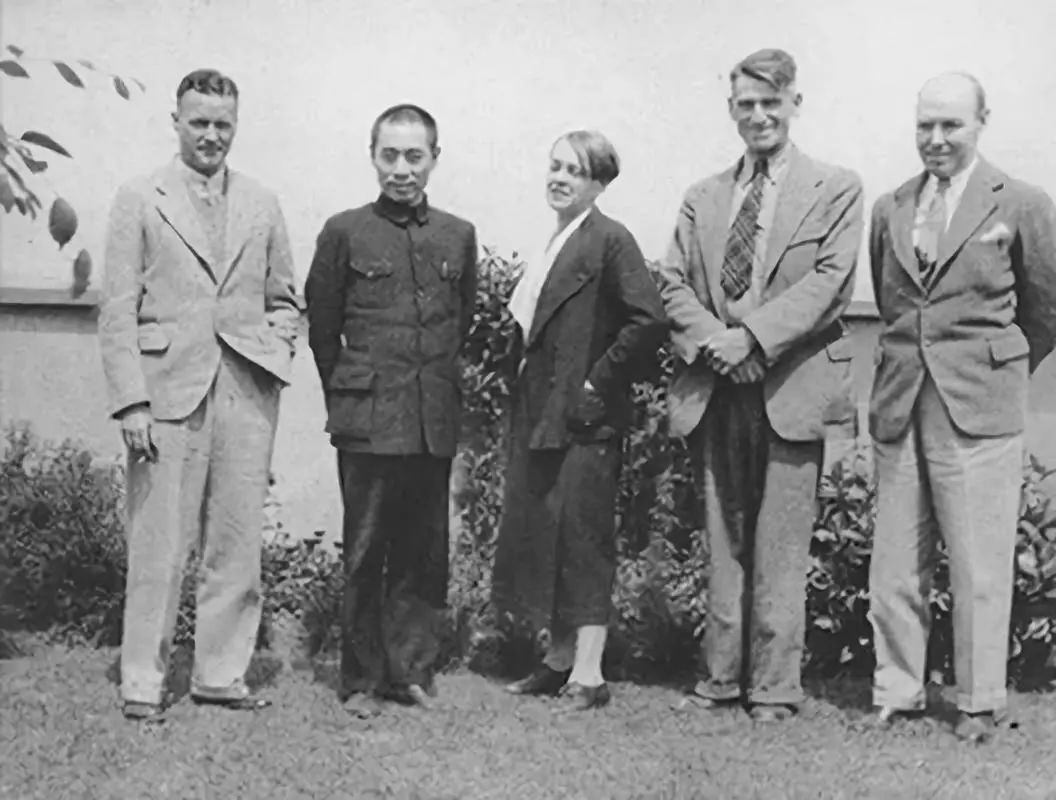 1938年,周恩来和美国进步作家史沫特莱(左三)等国际友人在武汉