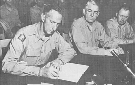 “联合国军”总司令、美国陆军上将克拉克,在朝鲜停战协定及临时补充协议上签字(图片来源:环球视野)