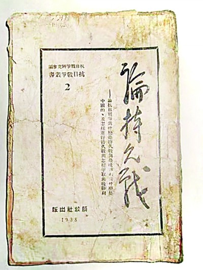 不久,在延安抗日战争研究会上,毛泽东以《论持久战》为题发表了演讲,受到干部、战士们的热烈欢迎。7月1日出版的《解放》第43、44期合刊全文刊载了《论持久战》。为了让全国军民学习了解持久战这一战略,中共中央决定出版发行《论持久战》一书。如今,中国人民抗日战争纪念馆珍藏了多个版本的《论持久战》。
