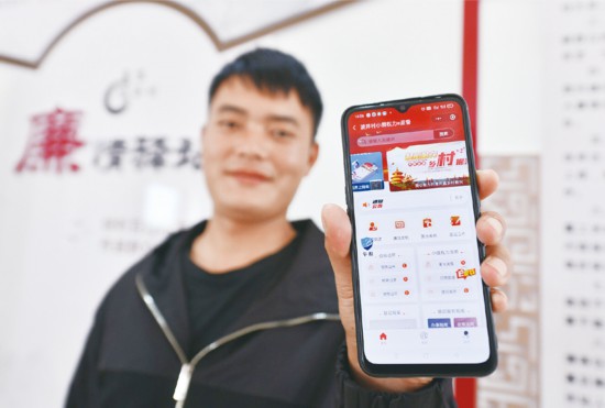 2021年以来,为进一步强化对基层微权力运行情况的监督,打通基层监督“毛细血管”,广西鹿寨县纪委监委积极探索微权力监督“互联网+”新模式,打造集廉政知识宣传、廉情信息收集、全天候网上监督等功能为一体的“廉情驿站”,村民通过手机就能对村内事务进行24小时“云监督”。图为村民在该县鹿寨镇波井村政务服务中心,展示“微权力监督e廉线”小程序。 新华社记者 黄孝邦/摄