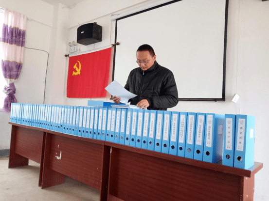 美姑县史志办副主任、拉木克库村第一书记洁松正在整理脱贫攻坚档案