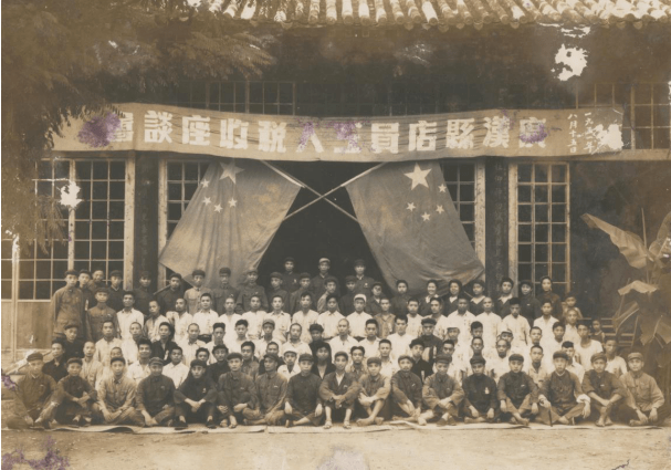 李振华(后排左一)参加广汉县店员工人税收座谈会留影(1951年8月15日摄)