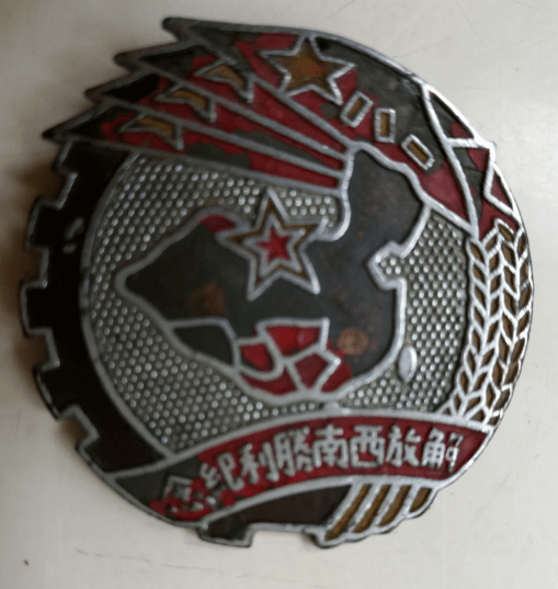 左图为 李振华荣获的解放华中南纪念章;右图为李振华荣获的解放西南胜利纪念章
