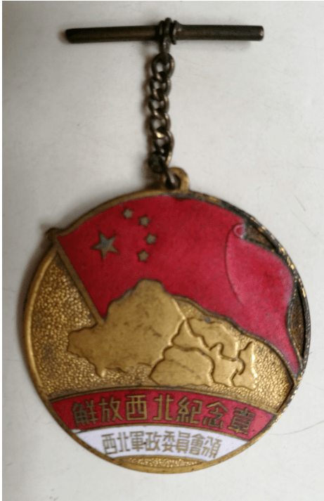 左图为李振华荣获的华北解放纪念章;右图为李振华荣获的解放西北纪念章