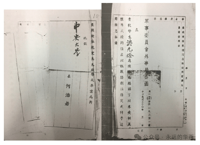 抗战结束后,军委会给中大发的遣回应征翻译官学生(洪光煃)的函