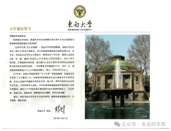 东南大学(原中央大学)张广军校长的贺卡