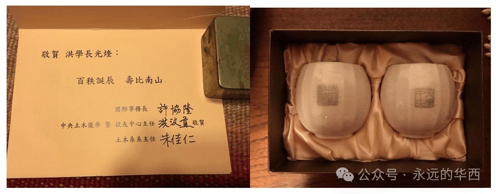 台湾校友的贺卡和礼物——刻有中大校训“诚朴”二字的陶瓷茶杯