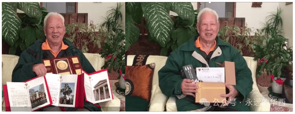 手捧生日礼物的洪光煃先生