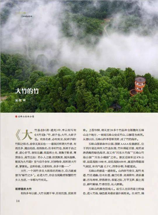 五峰山国家森林公园,国家AAAA 级旅游区,位于四川省达州市大竹县东部,竹林绵延百里,宛若波涛浩瀚的绿色海洋,故又有“ 川东大竹海”“五峰山竹海公园”“川东小峨眉”之称。景区总面积达 876 公 顷,最高海拔1080 米,最低海拔600 米,属亚热带湿润气候区,年均气温12.5℃,四季分明,冬暖夏凉。