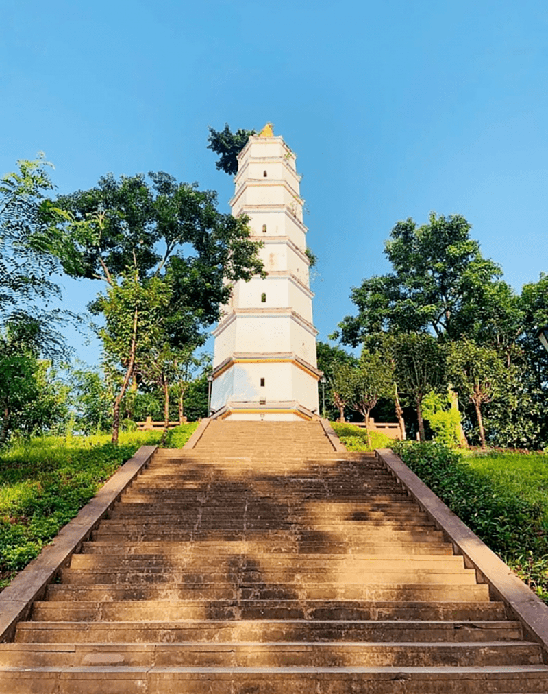 大竹县白塔公园里的白塔,该塔顶部石匾额上凿有江国霖 书写的“聚奎阁”三字