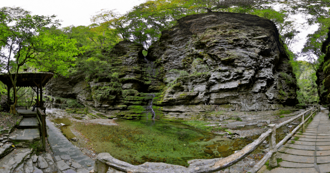 从旺苍县百丈关出发,过灵溪寺(现旺苍县职业中学)向南,自下而上到五峰山,这便是这条米仓道上最重要的何家沟路段。何家沟段是古时官吏、商贾、平民陆路上从陕西入川经旺苍去苍溪、阆中、重庆的必经之地。这一段崎岖陡峭的石梯路由3700余张石板铺就,全长十华里,从开始的海拔586米提升到844米,巧夺天工。明代川北道监察使杨瞻在翻越此段米仓道后,写下了《题灵溪》。他在诗中十分动情的写道: