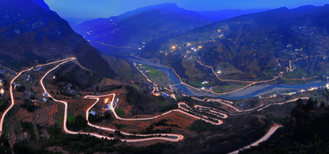 金色狂舞曲——旺苍县国华镇至天星乡通乡公路夜景(旺苍县地方志编纂中心 供图)