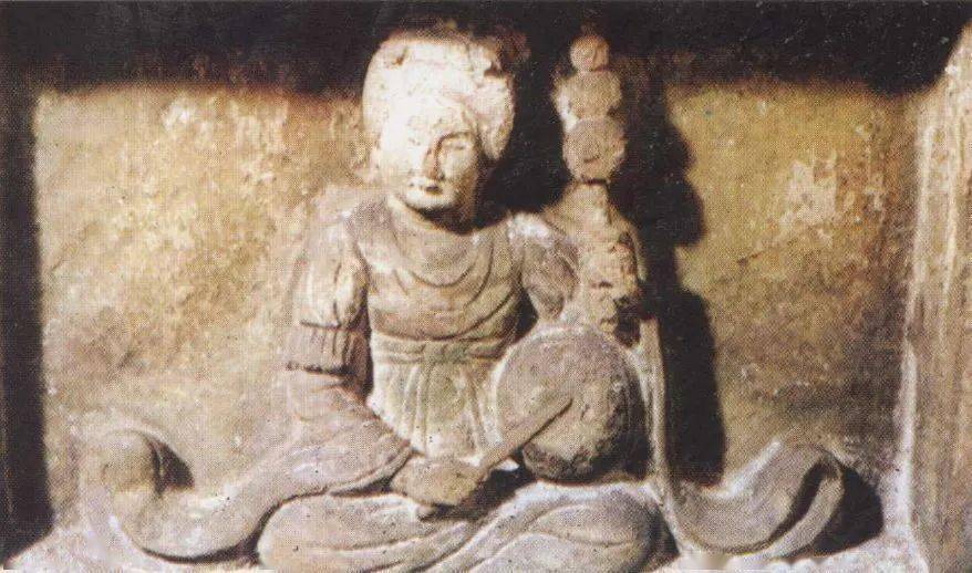石刻的两位舞者,身着长裙,云环高髻,华袂广袖,裙带飘飘,舞姿柔美,眉目传情。琵琶伎和拍板伎皆服饰华丽,头戴凤冠,肩披霞帔,身着彩衣,腰系罗裙,左手扶柱按弦,右手握拨弹奏,表情生动,形态自然。如果你凝视她时,仿佛会听见大珠小珠落玉盘之旋律,看见敦煌飞天舞伎中反弹琵琶者的英姿。