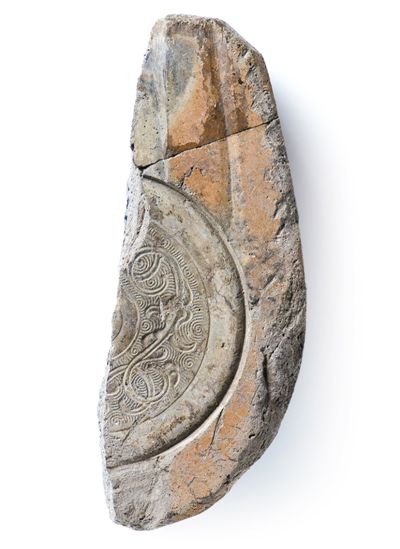 图为临淄齐故城阚家寨汉代铸镜作坊遗址出土的蟠螭纹镜背范。