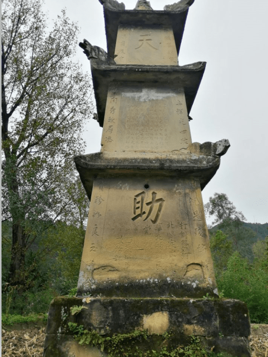 天符观石字库。位于旺苍县东河镇天符村,矗立在周家坝玉带水环正中岸上,建于清咸丰时期。塔高6米,塔座边长2米,塔基高0.6米,连底座共四层,层层四方上收。据传,塔基是鹿门口藏风聚气的穴场。当地传说塔基下边有一家叫做“幺店子”,某日一个住宿于此的书生,同该店女子一见钟情,不幸的是第二天书生暴病而亡,该店主便将书生偷葬于塔基处。该女十月怀胎产下一子,读书十分聪明,殿试时,一举考中当朝状元,新科状元回乡拜墓,为尽孝道,特建“培脉助风”四层风水字库塔。