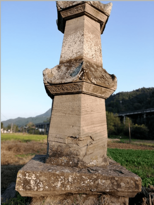 2020年11月1日,笔者在该地进行野外调查时,偶然遇见当地83老人袁朝群(女)。老人介绍,她小时候听婆婆讲,这个塔子在她婆婆小时候就已经有了;听婆婆的前人说,当时这个塔子还有几层,由于建成后将一湾水(地名)那里的风水档了,附近数里鸡不鸣、狗不叫,于是他们便组织人员一夜之间悄悄将塔子上面几层拉掉了,一直没有恢复。