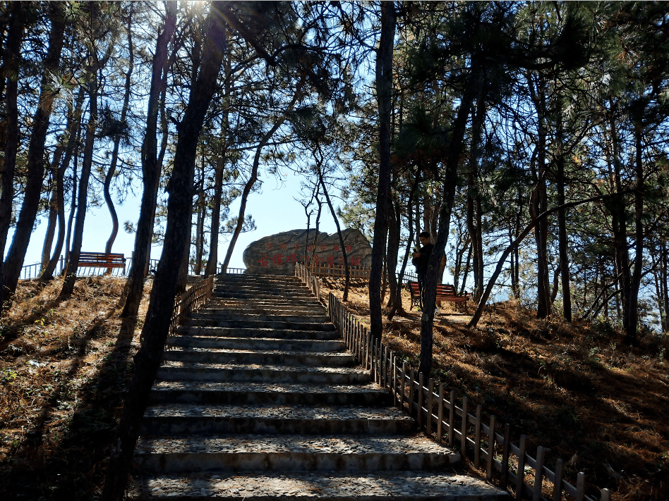 我们走出村党群服务中心大门,跨过宽大的村道公路,登上鹅卵石砌成的水泥梯,约莫几分钟工夫,便来到一个约1500米高的大山包。