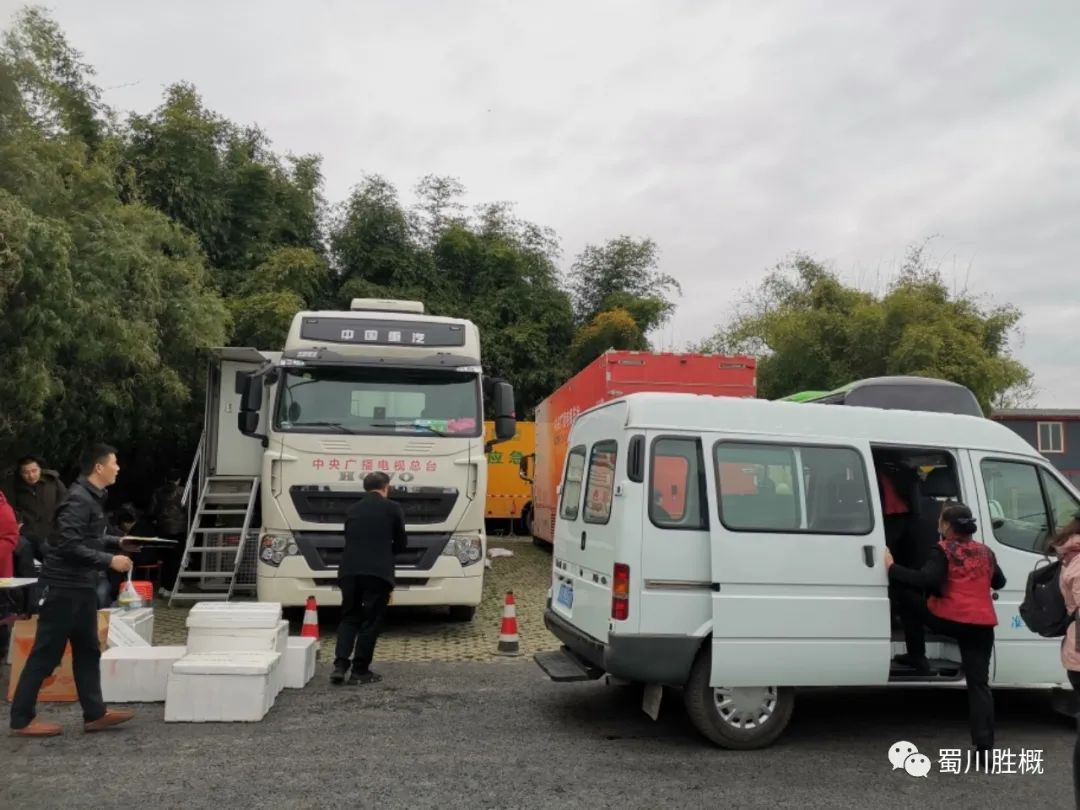 不大的停车场,被几辆大型直播车完全占用(李明斌 摄)