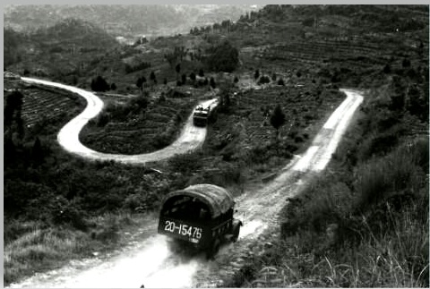 1978年,“老解放”卡车在老成渝路31公里至大兴公社区间公路上