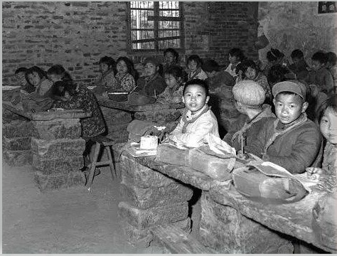 1977年,庆祝中共十一大的游行队伍通过成都龙泉镇中街