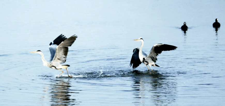 几只白鹭在表演“凌波微步”