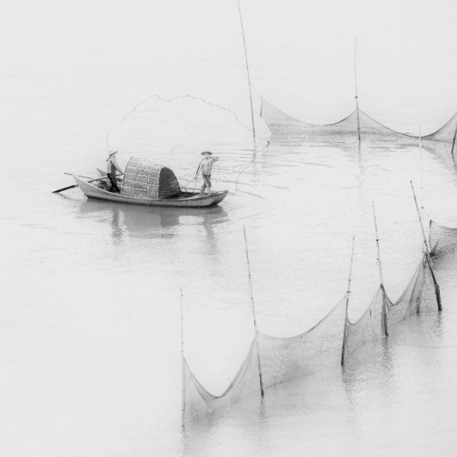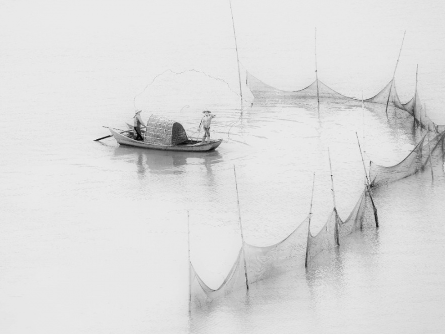 山环水抱。横跨连枝岛。四季烟波称浩渺。一叶扁舟孤棹。